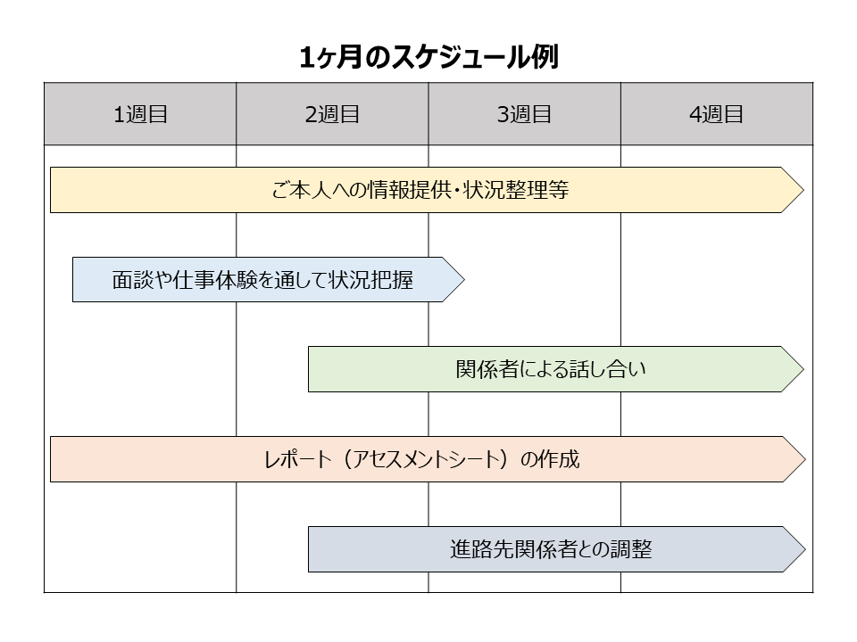※ 支援プログラムは原則1ヶ月です。 ただし、支援学校に在籍中の方など、1ヶ月の参加が難しい場合は、個別にご相談いただけます。まずはお問合せください。