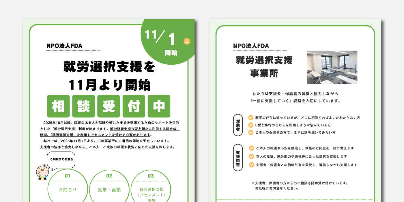 FDAの就労選択支援に関する資料を、こちらからダウンロードいただけます。